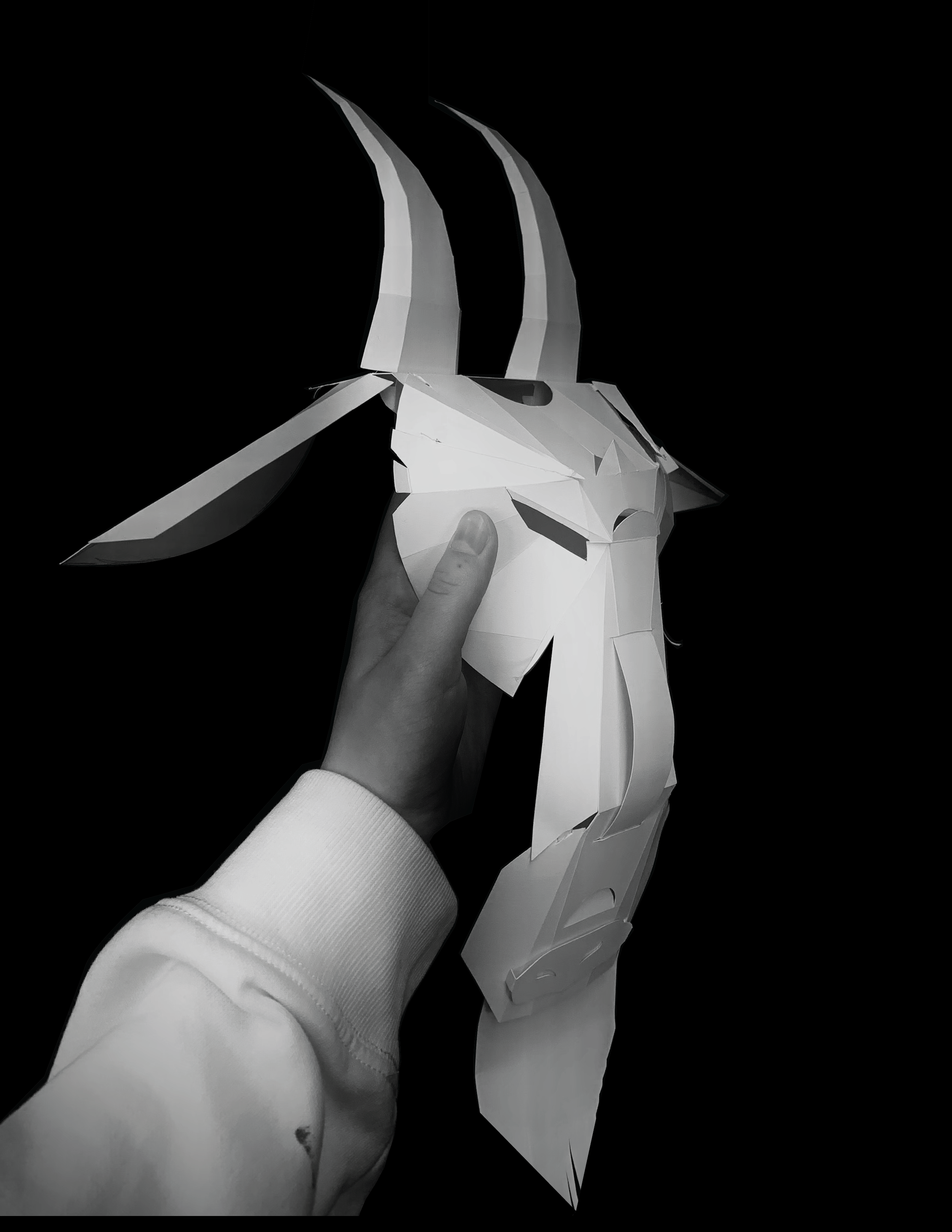 Final photographed and edited version of the Goat Mask. It was assembled by a user who successfully followed the instruction guide. This project improved my understanding of user experience, taught me laser-cutting skills, and enhanced my overall design abilities.
