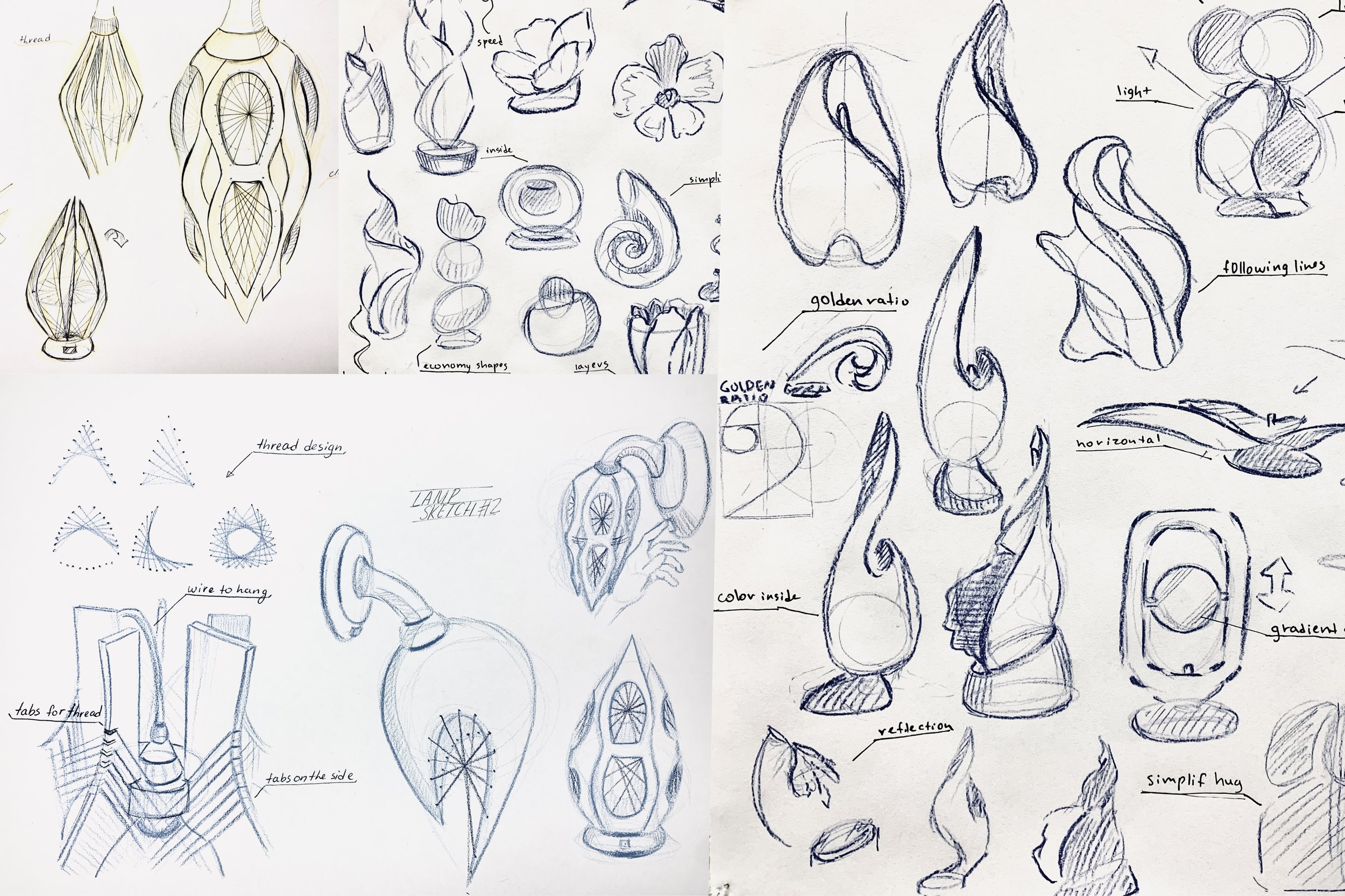 For the form exploration phase, I started by sketching floral and organic shapes — petals, buds, and spiral geometry that mimic nature’s growth. My goal was to translate the softness and gentle curves of a blooming bud into a physical object.