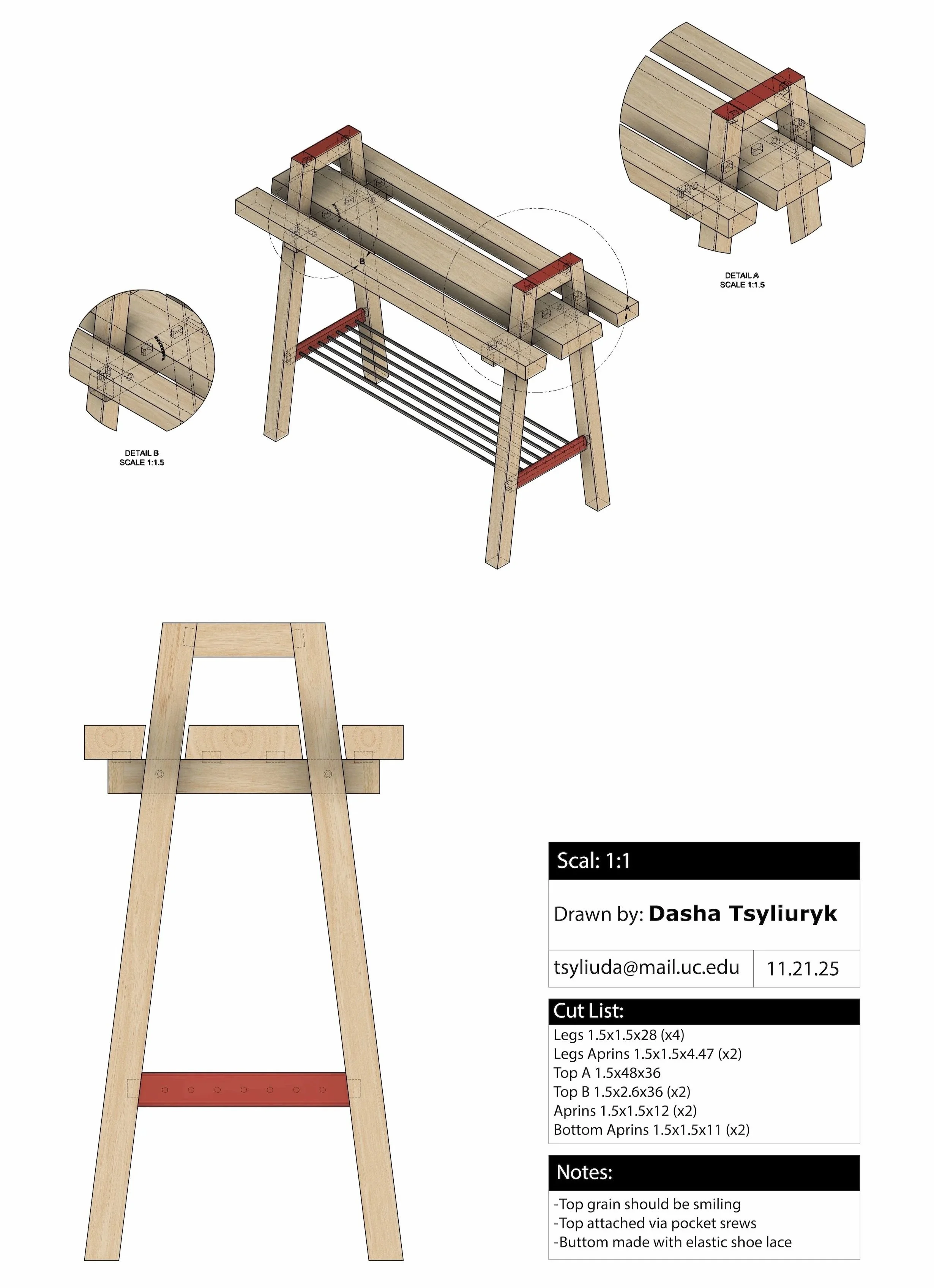 Modeled finalized form in Fusion 360, finalized the dimensions, and joinery.